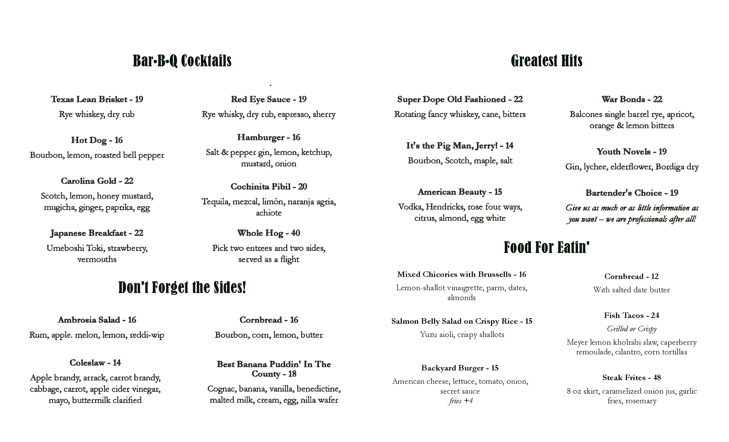THE OFFICIAL WEEKEND SWING SHIFT MENU